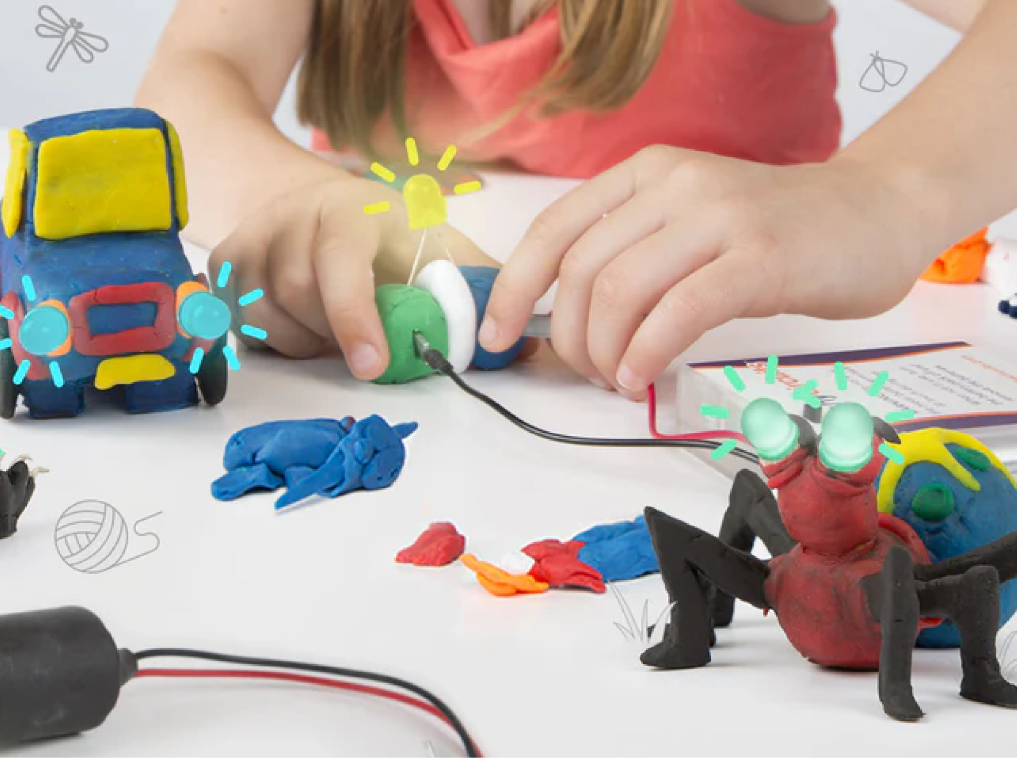 This hands-on program introduces young learners to the basics of circuits and electricity through creative building with soft clay and simple electrical components. Designed for curious builders ages 3+, students explore how power flows by shaping, connecting, and testing their own creations. Lights turn on. Buzzers sound. Ideas come to life.